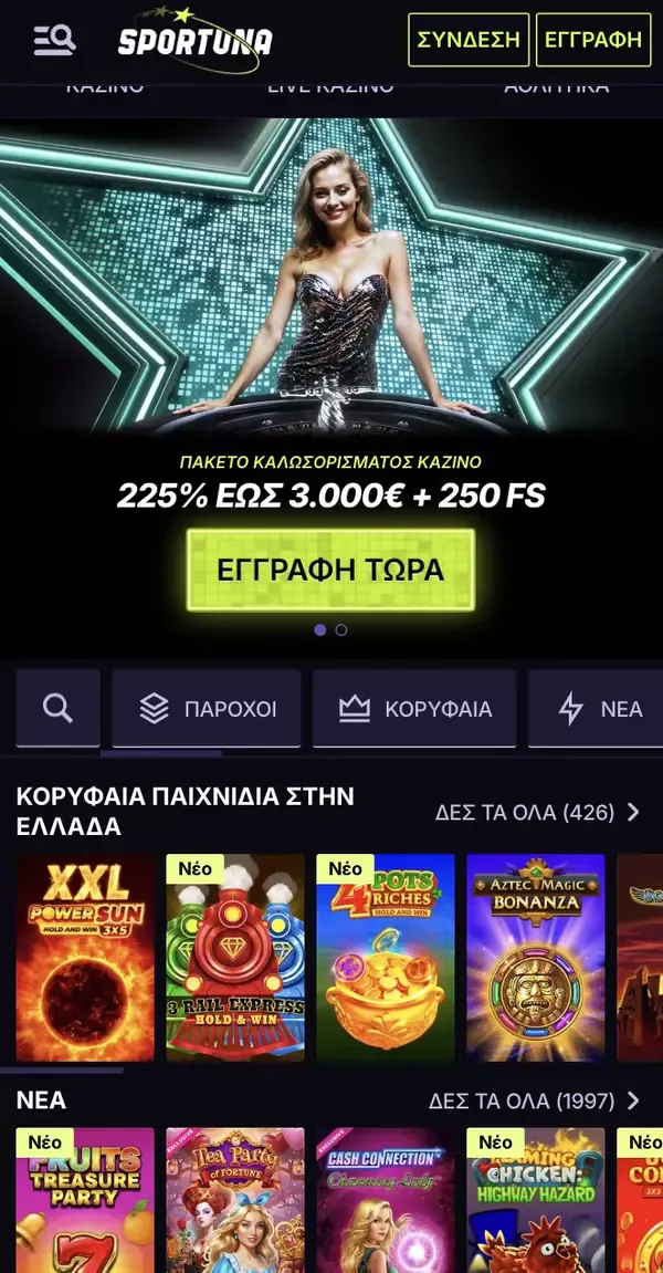 - Για τοπικό πλαίσιο, υποστηρίζουμε παίκτες στο καζίνο Sportuna Ελλάδα με μεθόδους EUR και ελληνική γλώσσα.
